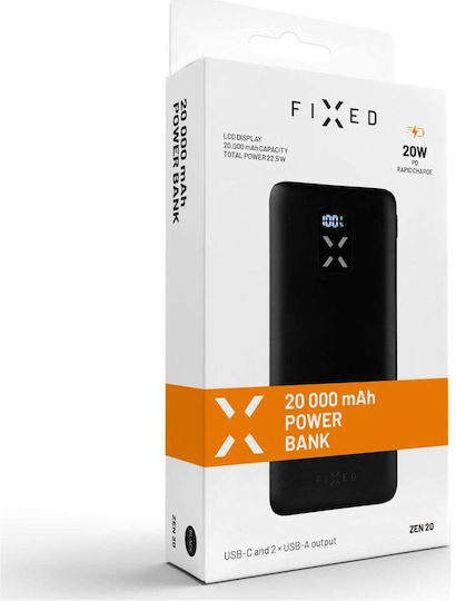Fixed Zen Power Bank 20000mAh 20W με 2 Θύρες USB-A Power Delivery Μαύρο