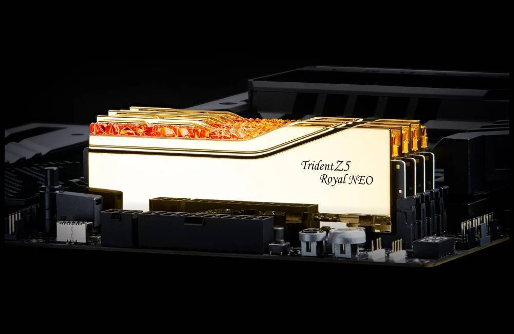 Η Trident Z5 Royal Neo είναι η πολυτελής κατηγορία μνήμης DDR5 με ακραίες επιδόσεις overclock, σχεδιασμένη για πλατφόρμες AMD AM5, η οποία διαθέτει σχεδίαση κόσμημα του στέμματος με κρυστάλλινη φωτεινή μπάρα για μια υπέροχη απεικόνιση προσαρμόσιμου φωτισμού RGB και επιμεταλλωμένα heatspreaders από αλουμίνιο με κατοπτρικό φινίρισμα σε χρυσό ή ασημί χρώμα.