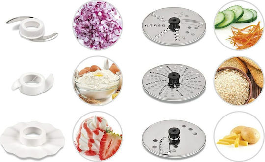 • 3 αναστρέψιμοι δίσκοι από ανοξείδωτο ατσάλι, για τεμαχισμό και λαχανικά με ζουλιέν, για πολτοποίηση και τρίψιμο, για τηγανητές πατάτες