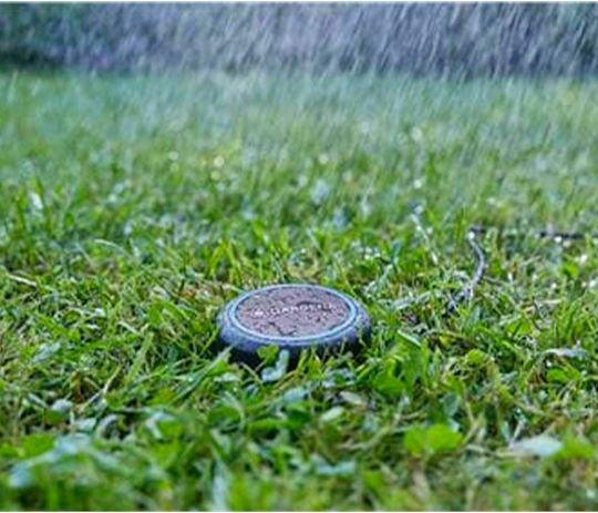 - Χάρη στο χαμηλό ύψος και την επίπεδη κορυφή του, το υγρασιόμετρο μπορεί ακόμη και να εγκατασταθεί σε γκαζόν χωρίς να διαταράσσεται η διαδικασία κουρέματος.