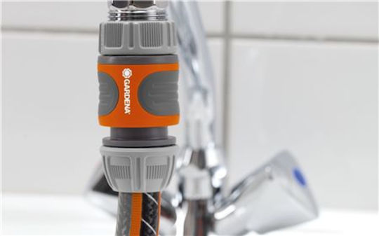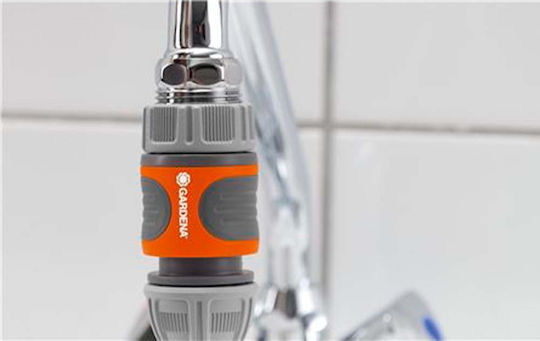 Πλήρες σετ σύνδεσης GARDENA κατάλληλο για τη γρήγορη σύνδεση μιας βρύσης (π.χ. στην κουζίνα ή στο μπάνιο) με το λάστιχο κήπου.