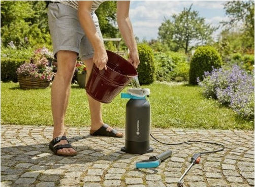 Πριν ξεκινήσετε, δημιουργείτε πίεση στο δοχείο των 5 λίτρων αντλώντας το πρακτικό χερούλι D προς τα πάνω και προς τα κάτω. Καθώς η φιάλη ψεκασμού διαθέτει επίσης εργονομικά πέλματα ποδιών, έχετε πάντα σταθερό πάτημα κατά την άντληση. Για να φτιάχνετε τις δικές σας βιολογικές επεμβάσεις για τα φυτά, οι συνταγές και το αντίστοιχο νάιλον φίλτρο περιλαμβάνονται στη συσκευή. Χρησιμοποιώντας αυτό το φίλτρο είναι απλό να στραγγίξετε ένα αφέψημα τσουκνίδας για να ψεκάσετε για προστασία από παράσιτα όπως οι αφίδες. Η διαδικασία πλήρωσης διευκολύνεται σημαντικά από το άνοιγμα του κώνου των 12 cm.
