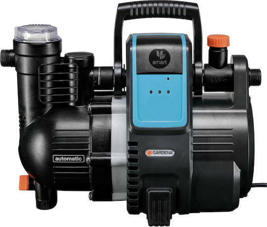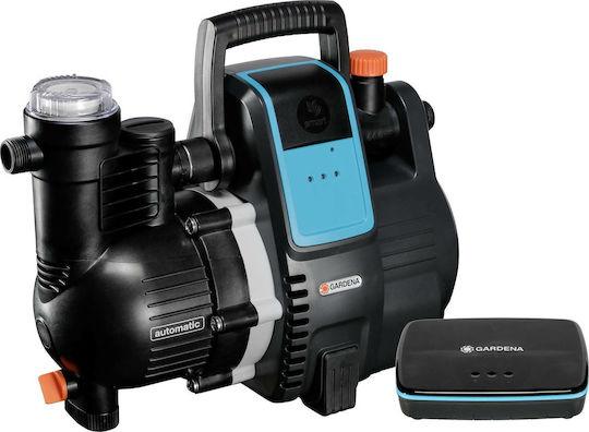 Έξυπνη ηλεκτρονική αντλία νερού Gardena 5000/5E με παροχή έως 5000l/h, ιδανική για χρήση στο σπίτι ή για άρδευση του κήπου. Ικανή να αντλήσει νερό από πηγάδια ή στέρνες, με δυνατότητα προγραμματισμού χρόνου ποτίσματος μέσω έξυπνης εφαρμογής.
