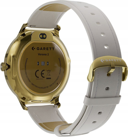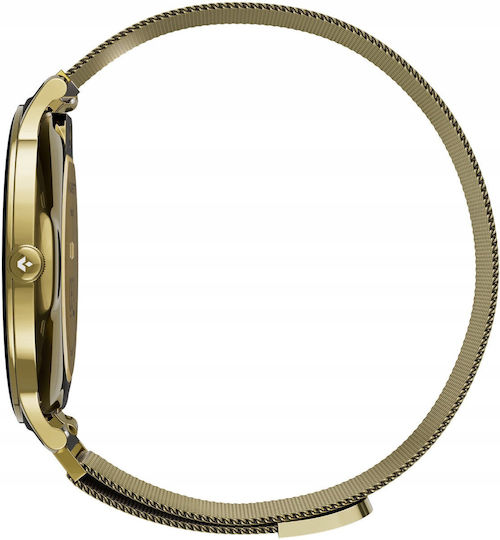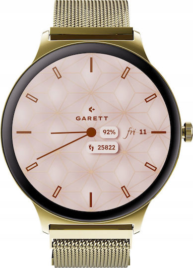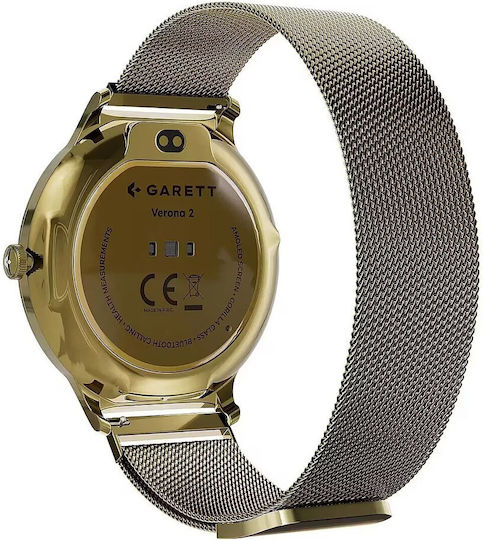 Garett Verona 2 Stainless Steel 43mm Smartwatch με Παλμογράφο (Gold Mesh)