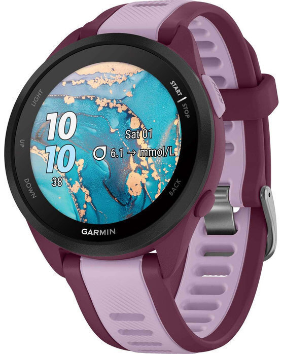 Garmin Forerunner 165 Music 43mm Αδιάβροχο Smartwatch με Παλμογράφο (Berry/Lilac)