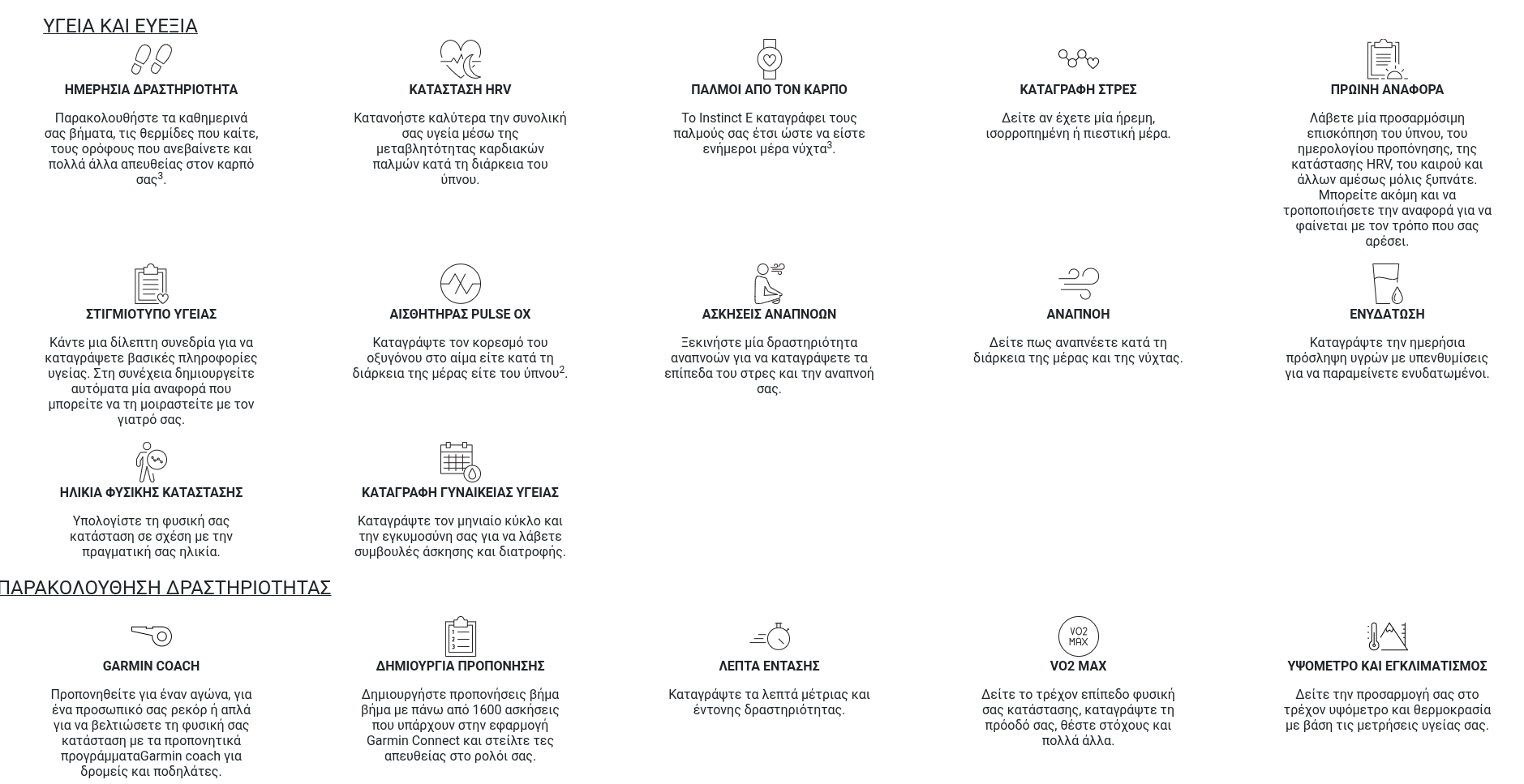Το Instinct E είναι το ανθεκτικό smartwatch με GPS και τις απαραίτητες λειτουργίες που χρειάζεστε για να κατακτήσετε την μέρα σας.