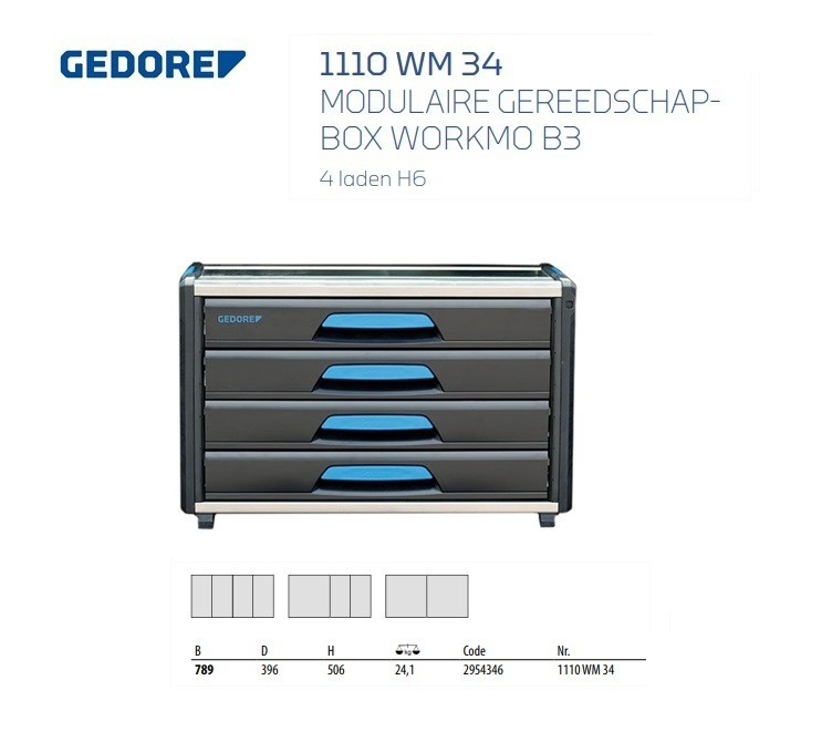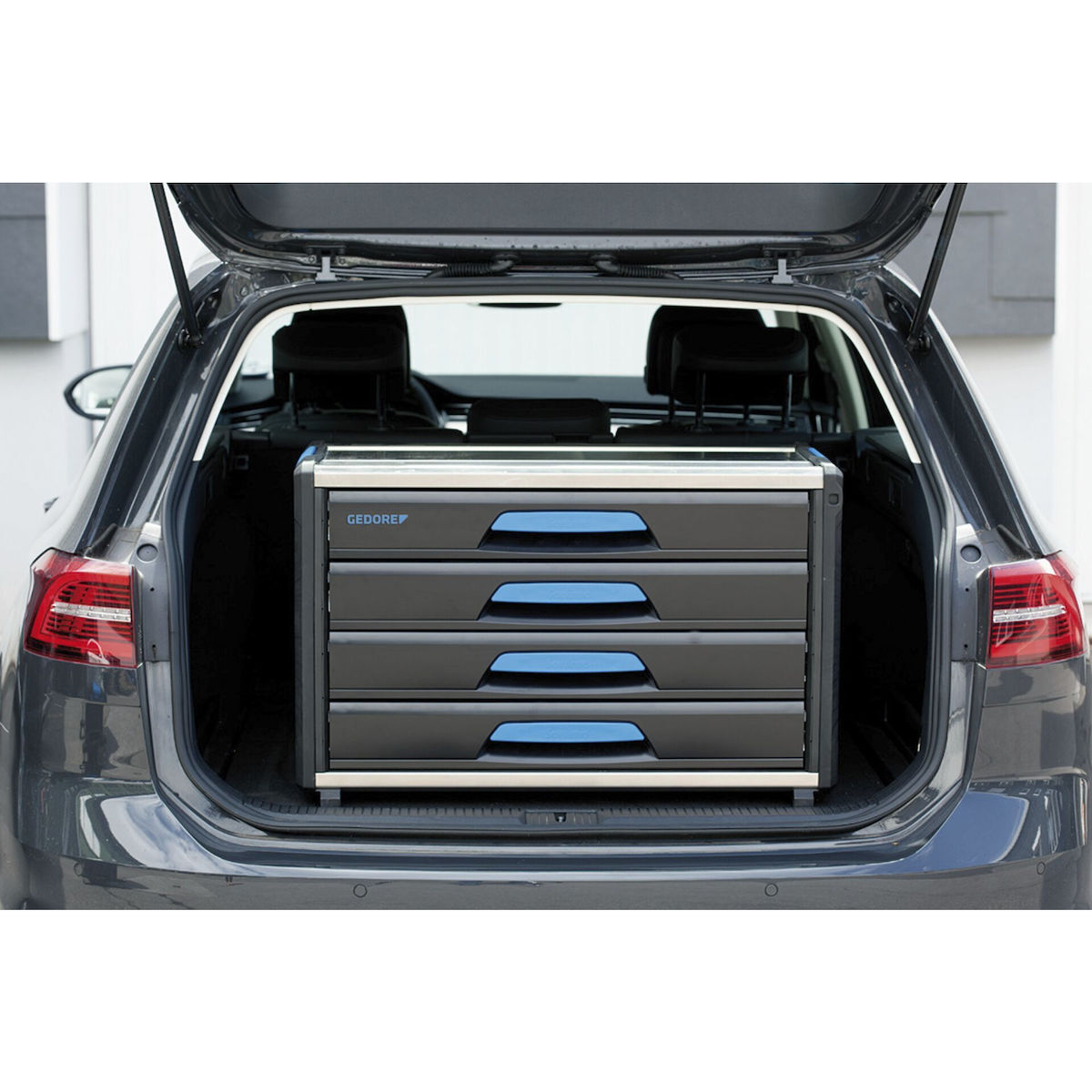 Η GEDORE WorkMo είναι ένα σύστημα συρταριέρας εργαλείων με 4 συρτάρια, σχεδιασμένη για χρήση με τις μονάδες GEDORE 1500 ES/1500 CT. Είναι κατασκευασμένη από ελαφρύ και σταθερό μείγμα αλουμινίου και πλαστικού, προσφέροντας υψηλή αντοχή και αξιοπιστία.