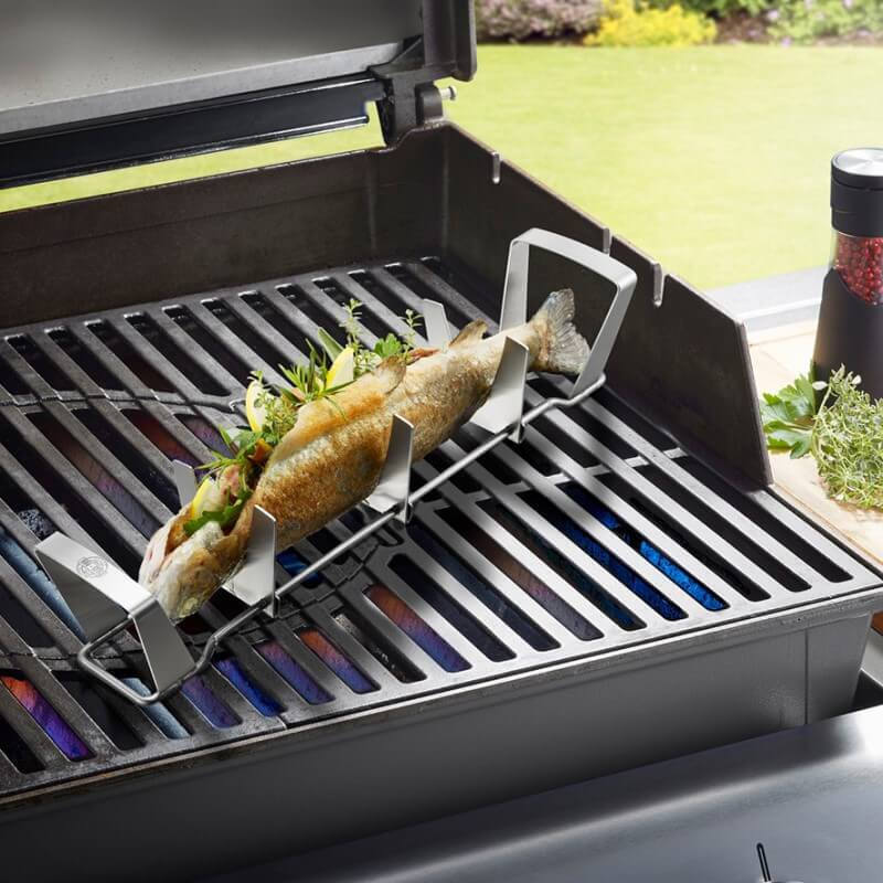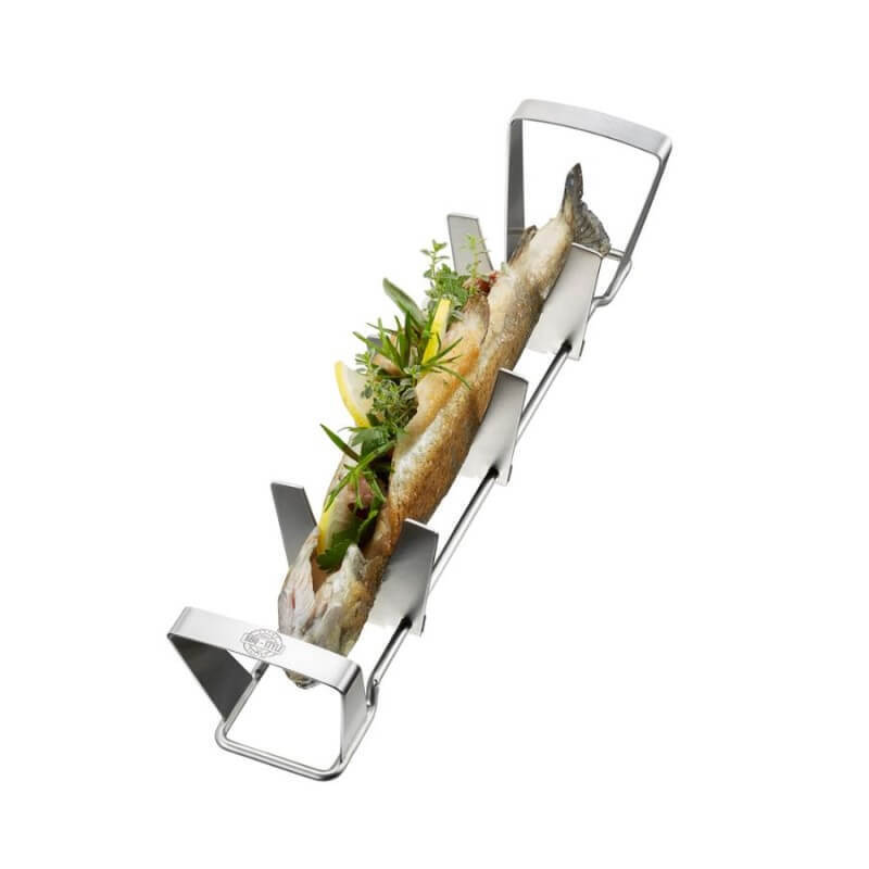 Βάση ψησίματος ψαριού ανοξείδωτη BBQ. Με συρόμενα στηρίγματα που εξασφαλίζουν ότι το ψάρι μπορεί να τοποθετηθεί τέλεια και να φτάσει στο τραπέζι με το δέρμα του ανέπαφο.