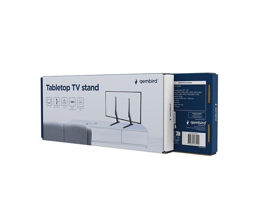 Η επιτραπέζια βάση τηλεόρασης Gembird TVS-D70F-01 είναι ιδανική για τηλεοράσεις από 37 έως 70 ίντσες, προσφέροντας μια πρακτική και ασφαλή λύση τοποθέτησης. Είναι σχεδιασμένη για να τοποθετείται σε επίπεδες επιφάνειες, προσφέροντας σταθερότητα και ευκολία στη χρήση.