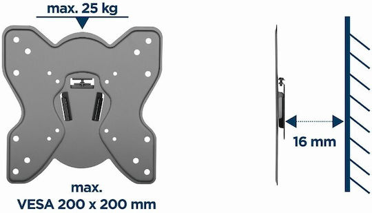 Gembird WM-42F-03 Βάση Τηλεόρασης Τοίχου έως 42″ και 25kg Μαύρο