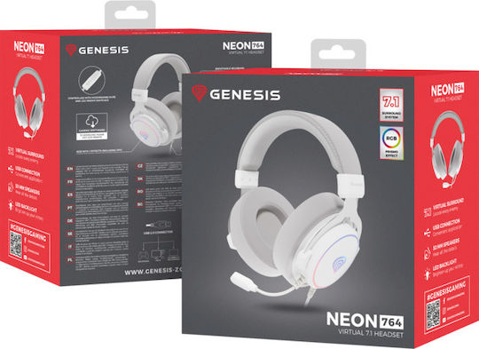 Genesis Neon 764 Over Ear Gaming Headset με σύνδεση USB Λευκό