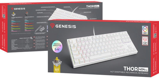 Genesis Thor 404 Gaming Μηχανικό Πληκτρολόγιο Tenkeyless με Gateron Yellow διακόπτες και RGB φωτισμό (Αγγλικό US) Λευκό