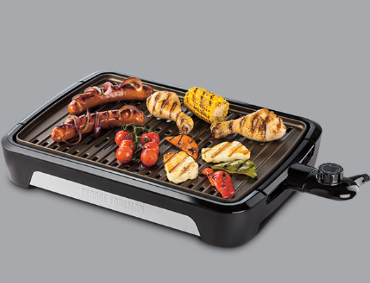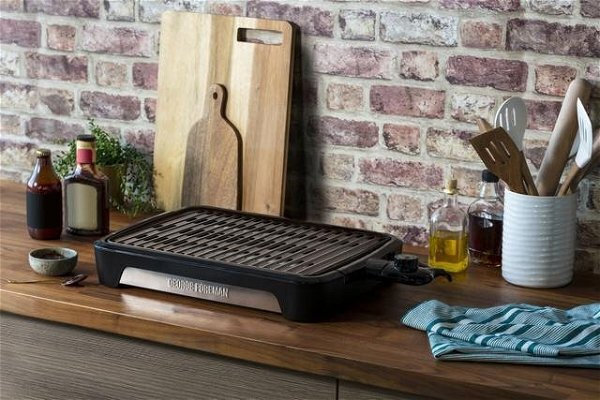 Επιτραπέζια ηλεκτρική ψησταριά της εταιρείας George Foreman, με απόδοση ισχύς 1600W. Είναι κατάλληλη για καθημερινή χρήση επιτρέποντας το ψήσιμο μικρότερων αλλά και μεσαίων κομματιών κρέατος καθώς και λαχανικών. Παρέχει ικανοποιητική προθέρμανση και απόδοση καλύπτοντας τις καθημερινές ανάγκες προετοιμασίας του γεύματος σας.