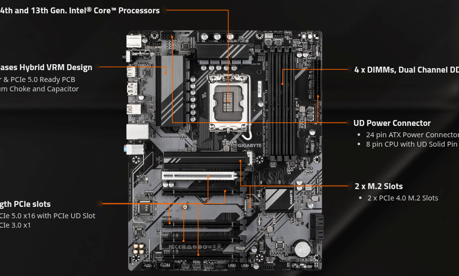 Οι νέες μητρικές GIGABYTE B760 προσφέρουν την πιο αποδοτική λύση για να απολαύσετε βελτιωμένες επιδόσεις PCIe Gen5 στην υπάρχουσα πλατφόρμα. Το PCIe 5.0 διπλασιάζει τον ρυθμό μεταφοράς δεδομένων του PCIe 4.0 από 16 GT/s σε 32 GT/s ανά λωρίδα. Αυτή η σημαντική αύξηση στο εύρος ζώνης ωφελεί ιδιαίτερα τις κάρτες γραφικών υψηλών επιδόσεων, τις συσκευές αποθήκευσης και τους επιταχυντές AI που απαιτούν ταχύτερη μεταφορά δεδομένων.