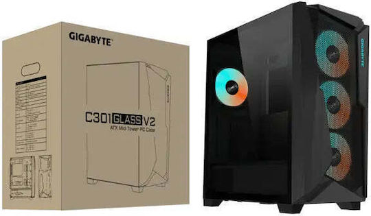 Gigabyte C301 Glass V2 Gaming Midi Tower Κουτί Υπολογιστή με RGB Φωτισμό Μαύρο