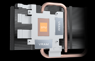 Η χάλκινη πλάκα έρχεται σε άμεση επαφή με την GPU, σε συνδυασμό με τους σύνθετους χάλκινους σωλήνες θερμότητας, οι οποίοι μεταφέρουν γρήγορα τη θερμότητα της GPU και της VRAM στην ψύκτρα.
