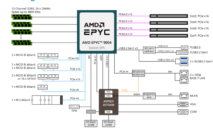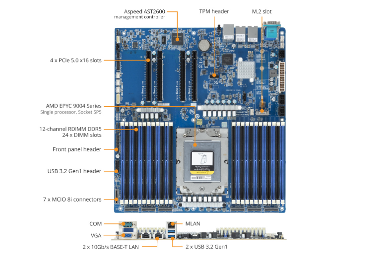 Η πορεία προς την αρχιτεκτονική ‘Zen 4’ στα 5nm της AMD χτίστηκε πάνω σε πολλές επιτυχημένες γενιές καινοτομιών EPYC και σχεδίων chiplet, με τους επεξεργαστές AMD EPYC 9004 Series να συνεχίζουν αυτήν την εξέλιξη. Προσθέτοντας ένα σύνολο νέων χαρακτηριστικών για την κάλυψη ενός ευρέος φάσματος εργασιών, η νέα σειρά EPYC προσφέρει ακόμη καλύτερη απόδοση CPU και απόδοση ανά watt, σε μια πλατφόρμα που διαθέτει διπλάσιο εύρος ζώνης PCIe 4.0 και υποστήριξη για 50% περισσότερα κανάλια μνήμης. Για αυτήν τη νέα πλατφόρμα, η GIGABYTE διαθέτει προϊόντα σχεδιασμένα να αξιοποιούν πλήρως τα EPYC-based συστήματα, με υποστήριξη για ταχύτατους PCIe Gen5 accelerators, Gen5 NVMe drives και υψηλής απόδοσης DDR5 μνήμη.