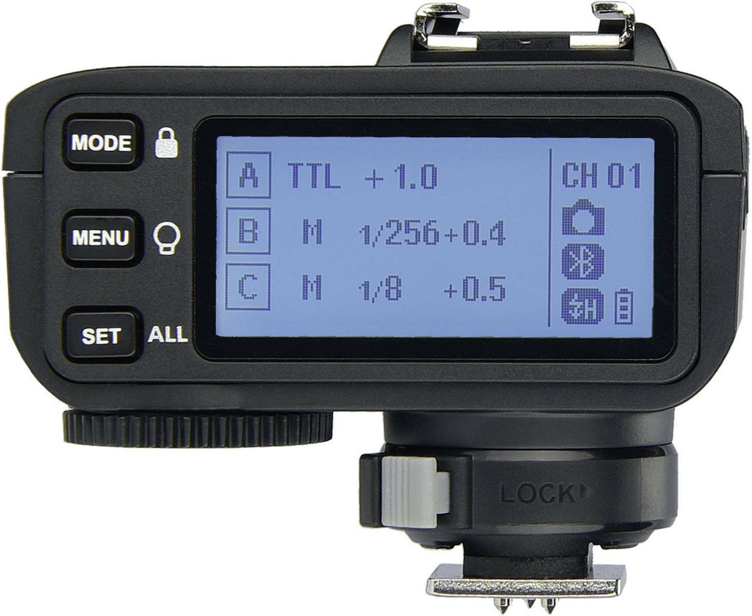 Το Godox X2T-O είναι ένας TTL πομπός ραδιοσυχνοτήτων 2.4GHz συμβατός με το σύστημα Godox X. Είναι πλήρως συμβατός με όλα τα flash Godox που ενσωματώνουν το σύστημα X. Υποστηρίζει τις λειτουργίες HSS (1/8000), FEC, FEL, Second Curtain Sync, PC Sync Input & Output.