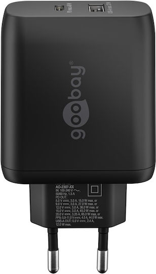 Goobay Φορτιστής Χωρίς Καλώδιο με Θύρα USB-A και Θύρα USB-C Power Delivery Μαύρος (65409)