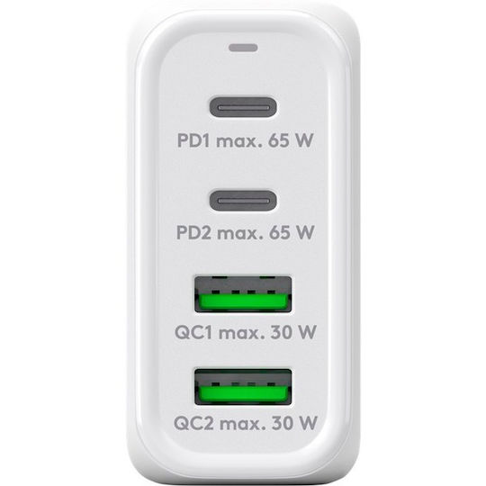 Goobay Φορτιστής Χωρίς Καλώδιο με 2 Θύρες USB-A και 2 Θύρες USB-C 68W Λευκός (64818)