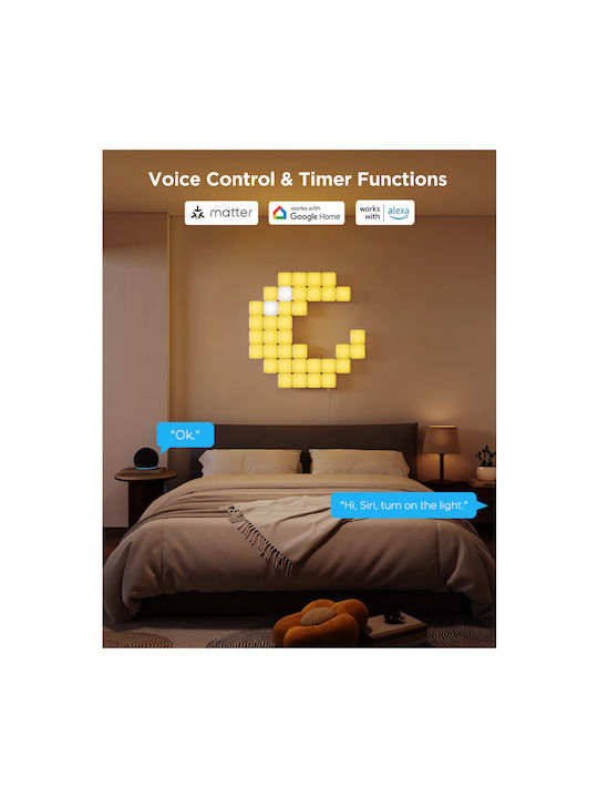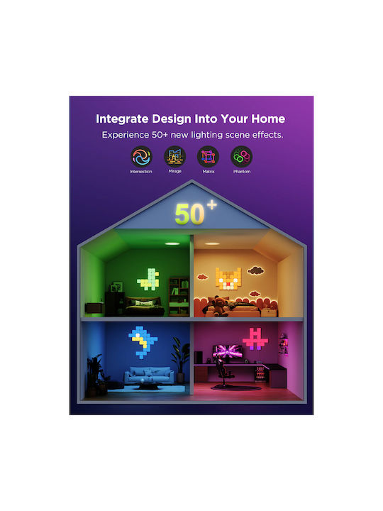 Η modular σχεδίαση των Mini Panel Lights σου επιτρέπει να τα συνδυάζεις όπως θέλεις, δημιουργώντας μοναδικά γεωμετρικά σχέδια για τον τοίχο, το γραφείο ή τον gaming χώρο σου. Η εγκατάσταση είναι εύκολη χάρη στις αυτοκόλλητες βάσεις 3M, ενώ μπορείς να τα ελέγχεις μέσω Wi-Fi και Bluetooth από την εφαρμογή Govee Home.