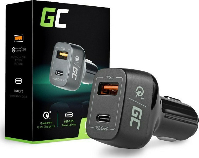 Φορτιστής αυτοκινήτου Green Cell 48W USB-C. Ο φορτιστής αυτοκινήτου Green Cell USB-C είναι μια συσκευή για ειδικές εργασίες, πάντα έτοιμη να σας συνοδεύσει κατά τη διάρκεια του ταξιδιού σας. Εξοπλισμένος με δύο βολικές θύρες USB-A και USB-C, θα φορτίζει γρήγορα και με ασφάλεια συσκευές όπως το τηλέφωνο, το tablet σας, κάμερα αυτοκινήτου και πολλά άλλα.