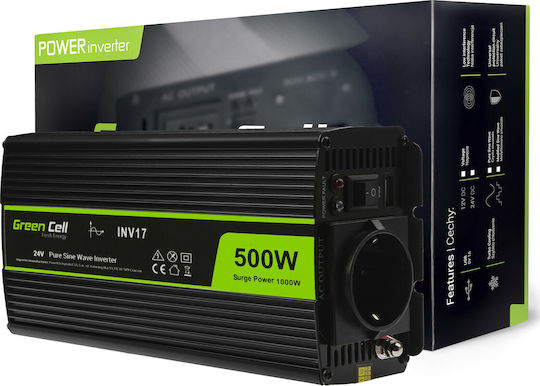 Green Cell INV17 Inverter Αυτοκινήτου Καθαρού Ημιτόνου 1000W για Μετατροπή 24V DC σε 230V AC με 1xUSB INV17