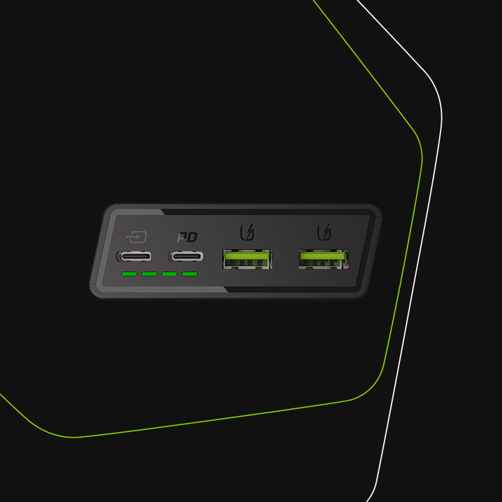 Το GC PowerPlay20 ήταν εξοπλισμένο με τέσσερις σύγχρονες θύρες. Με το συνδυασμό δύο θυρών USB-C PD και δύο θυρών GC Ultra Charge, θα μπορείτε να τροφοδοτείτε ταυτόχρονα έως και τρεις εξαιρετικά απαιτητικές συσκευές και να φορτίζετε ταυτόχρονα το ίδιο το power bank.