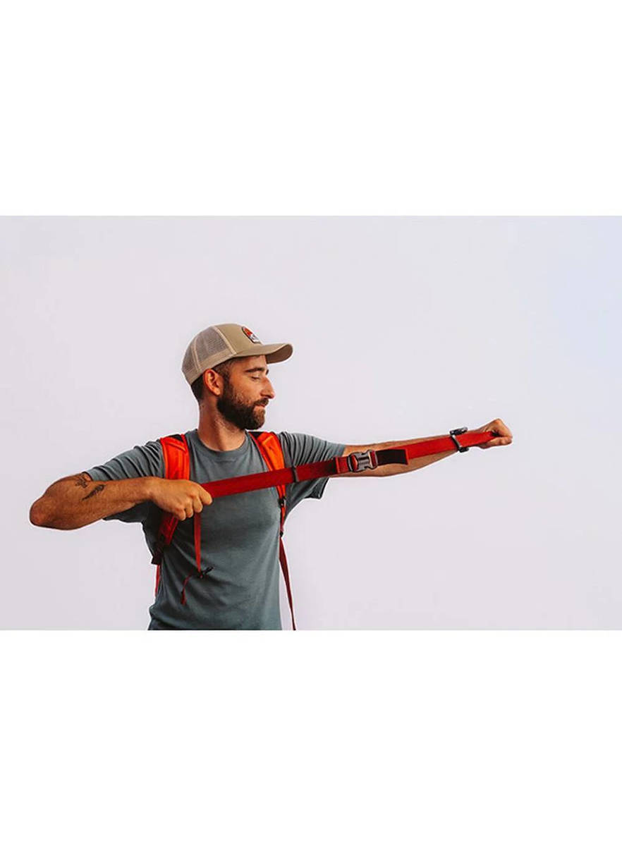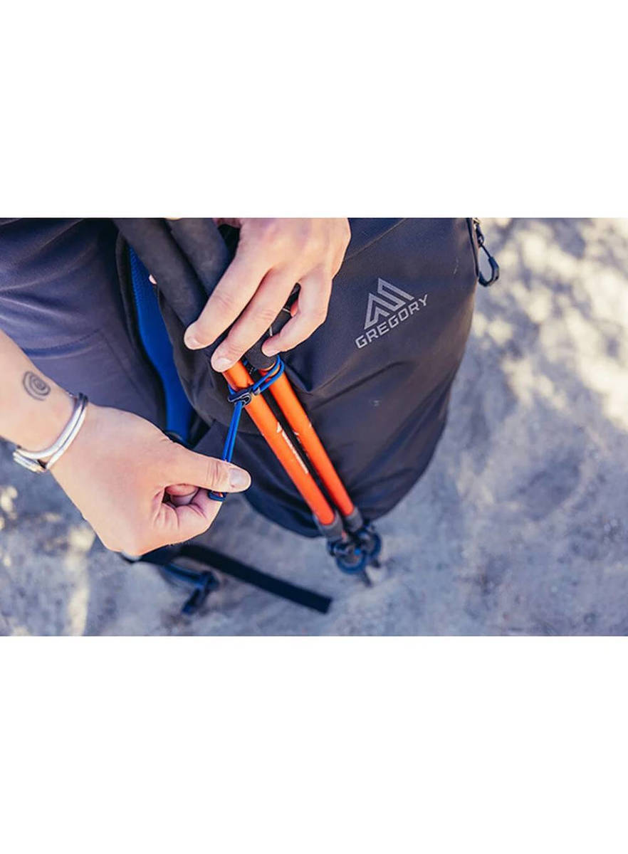 - Συνδέσεις για ραβδιά trekking με ελαστικούς ιμάντες άνω και κάτω για βολική αποθήκευση
