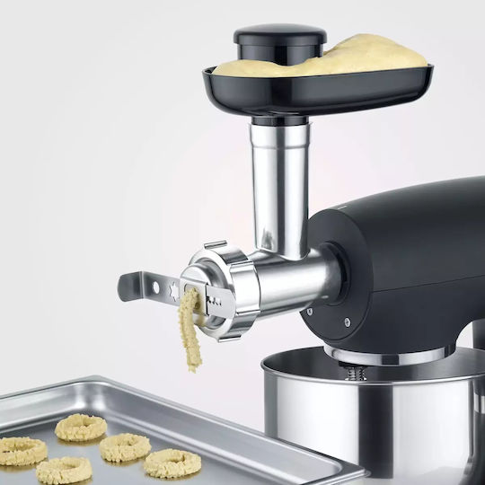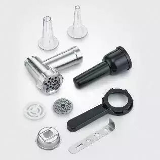 Ο προσαρμογέας είναι όχι μόνο στιβαρά κατασκευασμένος αλλά και ευέλικτος στη χρήση. Είναι εξοπλισμένος με δύο γεμιστήρες λουκάνικου και δύο πλέγματα, επιτρέποντας το άλεσμα κρέατος με διάφορους τρόπους και την προετοιμασία σπιτικών αλλαντικών.