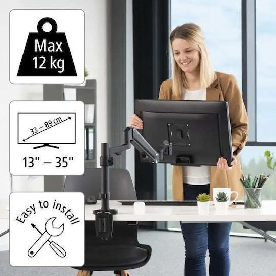 Βάση οθόνης υπολογιστή για οθόνες 12″-35″ με υποστήριξη VESA. Δυνατότητα περιστροφής 180° και κλίσης +/- 45°. Διαστάσεις: 11,5 x 51,35 x 54,54 cm. Συμβατή με VESA 75 x 75 και 100 x 100. Μέγιστο βάρος: 12 kg.