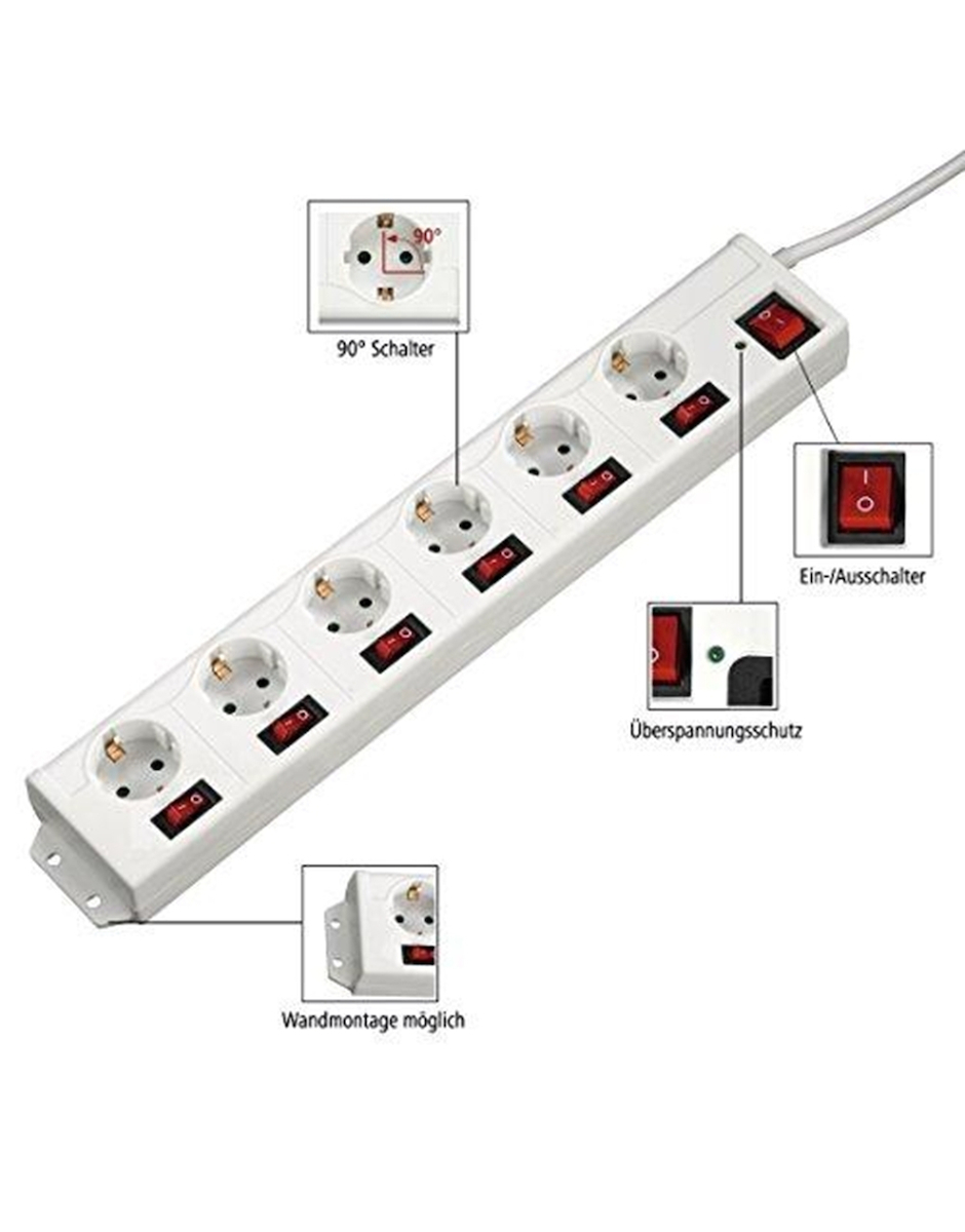 HAMA Πολύπριζο Ασφαλείας 6 Θέσεων με Διακόπτη και Καλώδιο 1.4m