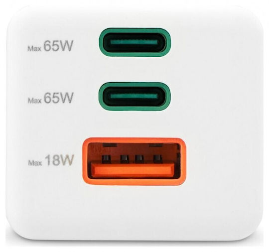 HAMA Φορτιστής Χωρίς Καλώδιο GaN με Θύρα USB-A και 2 Θύρες USB-C 65W Power Delivery Λευκός (00201996)