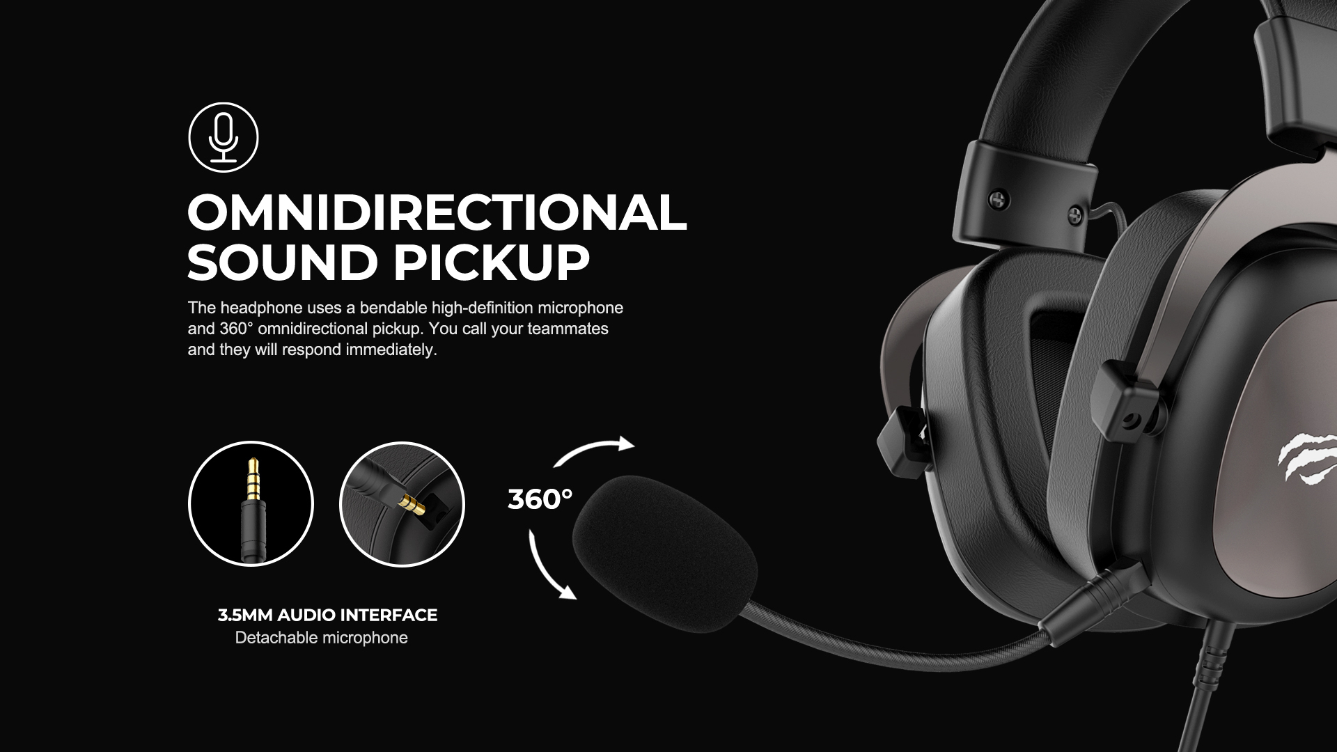 Τα ακουστικά χρησιμοποιούν ένα λυγισμένο μικρόφωνο υψηλής ευκρίνειας και πανκατευθυντική λήψη 360°. Καλείτε τους συμπαίκτες σας και εκείνοι θα ανταποκριθούν αμέσως.
