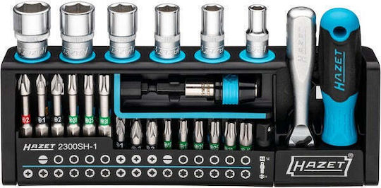 Σετ εργαλείων Hazet SmartHolder 2300SH-1, ιδανικό για επαγγελματική χρήση και χόμπι στο σπίτι. Το σετ περιλαμβάνει 39 τεμάχια με διαφορετικούς τύπους συνδέσεων και μπίτες, προσφέροντας ευελιξία κατά τις επισκευές και συντηρήσεις.