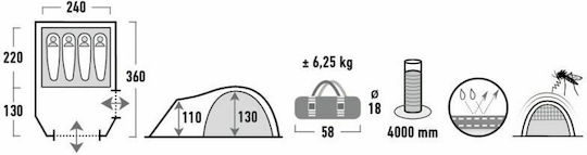 High Peak Mesos 4 Χειμερινή Σκηνή Camping Τούνελ Ορειβασίας Μαύρη με Διπλό Πανί για 4 Άτομα Αδιάβροχη 4000mm 360x240x130εκ. 11525