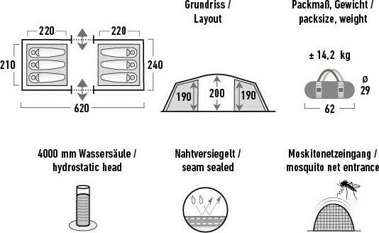 High Peak Tauris 6 Χειμερινή Σκηνή Camping Τούνελ Γκρι με Διπλό Πανί για 6 Άτομα 620x240x190εκ. 11562