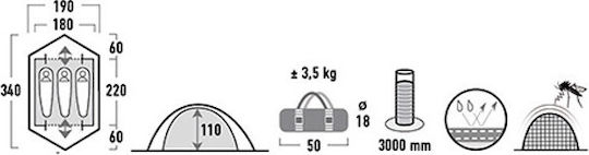 Η σκηνή είναι σχεδιασμένη για να φιλοξενεί έως τρία άτομα και προσφέρει αδιάβροχο προστασία από τις καιρικές συνθήκες, καθώς και καλή αεριζόμενη θέση διαμονής. Επίσης, η σκηνή είναι εύκολη στη συναρμολόγηση και αποσυναρμολόγηση και μπορεί να μεταφερθεί εύκολα στις διακοπές, στο camping, στην αναρρίχηση ή σε άλλες εξορμήσεις στη φύση.
