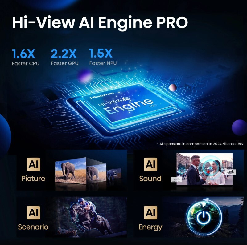Ο ήχος είναι στερεοφωνικός, προσφέροντας ποιότητα ήχου που γεμίζει το χώρο, χάρη στα δύο ηχεία που διαθέτει. Ο δέκτης του υποστηρίζει DVB-C, DVB-S2 και DVB-T2, προσφέροντας ευελιξία στην παρακολούθηση ψηφιακών καναλιών.