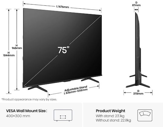 • Διαγώνιος οθόνης: 75 ίντσες