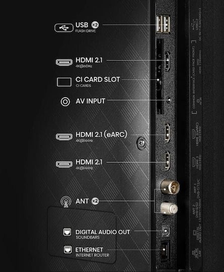 Η τηλεόραση διαθέτει στερεοφωνικά ηχεία για καλύτερη ακουστική εμπειρία και υποστηρίζει πολλές δημοφιλείς εφαρμογές, όπως Netflix, Youtube και DisneyPlus, για εύκολη πρόσβαση σε περιεχόμενο ψυχαγωγίας. Επίσης, η δυνατότητα ασύρματης σύνδεσης Wi-Fi και η θύρα Ethernet διευκολύνουν την επικοινωνία με το διαδίκτυο.