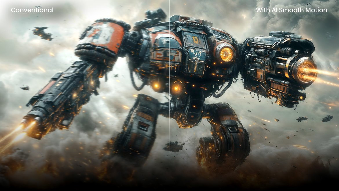Ζήσε ρεαλιστική κίνηση, ακόμα και στις πιο έντονες σκηνές. Με τεχνολογίες MEMC, AI Smooth Motion και 3D Noise Reduction, ενσωματωμένες σε ένα πάνελ υψηλής απόκρισης. Με την τεχνολογία AI Smooth Motion, το ενοχλητικό θάμπωμα κίνησης βρίσκεται στο παρελθόν. Είτε πρόκειται για αθλήματα με γρήγορο ρυθμό είτε για παιχνίδια γεμάτα δράση, κάθε κίνηση και ξαφνική ανατροπή αποδίδεται με καθαρή ευκρίνεια, διασφαλίζοντας ότι οι δυναμικές σκηνές εμφανίζονται φυσικές και αληθινές
