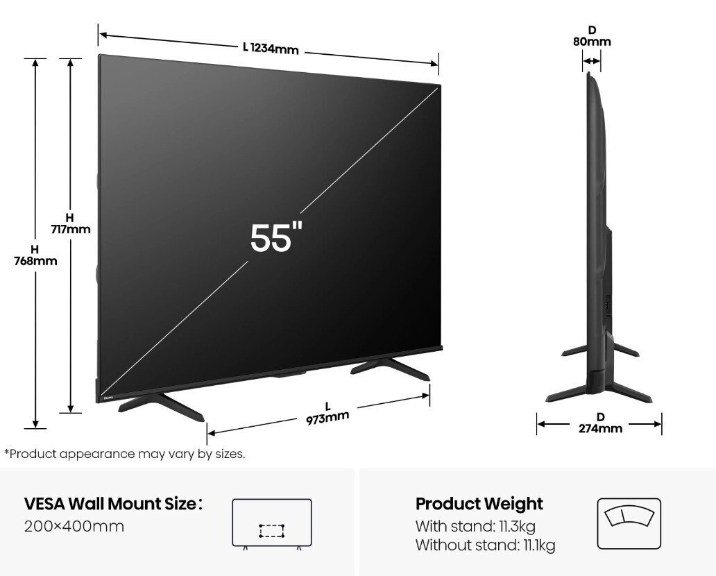 - Διαγώνιος οθόνης: 55 ίντσες