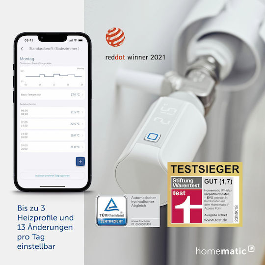 HomeMatic 155105A0 Ηλεκτρονική Θερμοστατική Κεφαλή με Wi-Fi για Σώμα Καλοριφέρ 1τμχ