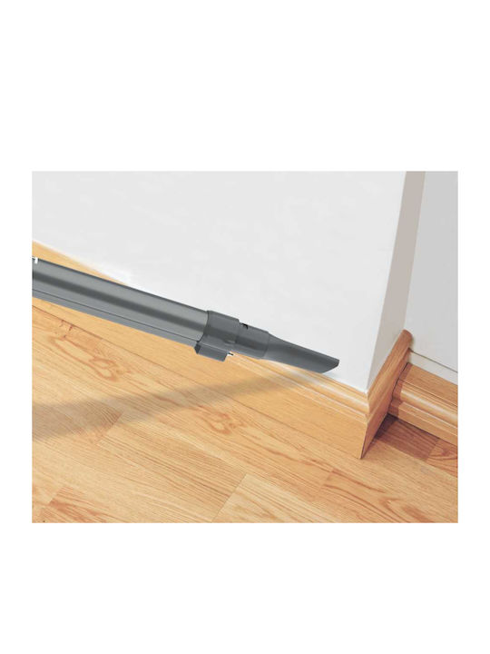 Η H-FREE 100 είναι εξοπλισμένη με 2 εργαλεία, πάντα έτοιμα για χρήση. Η ενσωματωμένη βούρτσα καθαρισμού καθαρίζει λεπτές επιφάνειες (όπως οι ράφια) και αφαιρεί τις ακαθαρσίες από τις επιφάνειες. Το πρακτικό ρύγχος για γωνίες, είναι βολικά αποθηκευμένο μέσα στο σώμα, και βοηθάει στον καθαρισμό των στενών σημείων και χαραμάδων.