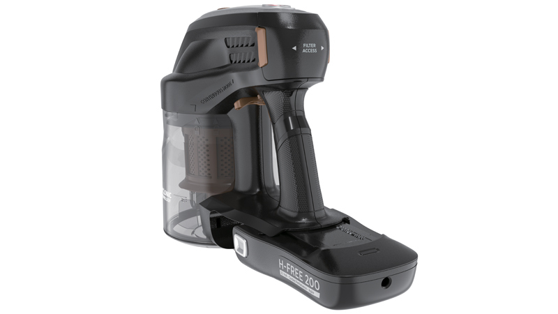 Με το H-FREE 200 δεν θα χρειαστεί να αποθηκεύσετε τη σκούπα ενώ η μπαταρία επαναφορτίζεται. Το σύστημα εξαγωγής μπαταριών του επιτρέπει να φορτίζεται στο ίδιο το προϊόν ή ανεξάρτητα από οποιαδήποτε πρίζα στο σπίτι.