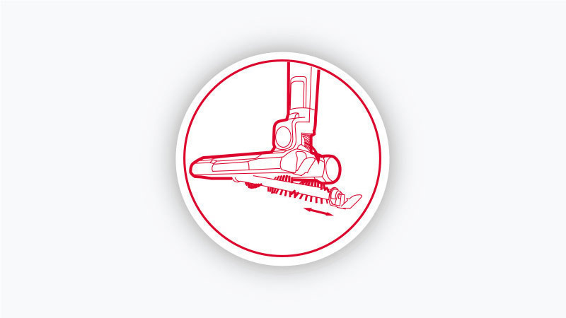 Χάρη στην πρωτοποριακή βούρτσα H-Lab Flat&Drive, μπορείτε να μετακινήσετε τη σκούπα σε γωνίες μεταξύ 90º και 180º με μια απλή κίνηση του καρπού, καθαρίζοντας ανάμεσα σε αντικείμενα, γωνίες ή κάτω από έπιπλα και φτάνοντας με άνεση στους πιο στενούς χώρους.