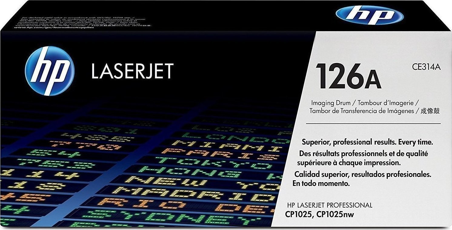 Τύμπανο απεικόνισης LaserJet HP 126A. Η μέση διάρκεια ζωής του τυμπάνου είναι 14.000 ασπρόμαυρες και 7.000 τυπικές έγχρωμες σελίδες.