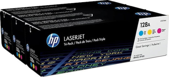 HP 128A Γνήσιο Multipack Toner Laser Εκτυπωτή Κίτρινο/Κυανό/Ματζέντα 3τμχ CF371AM