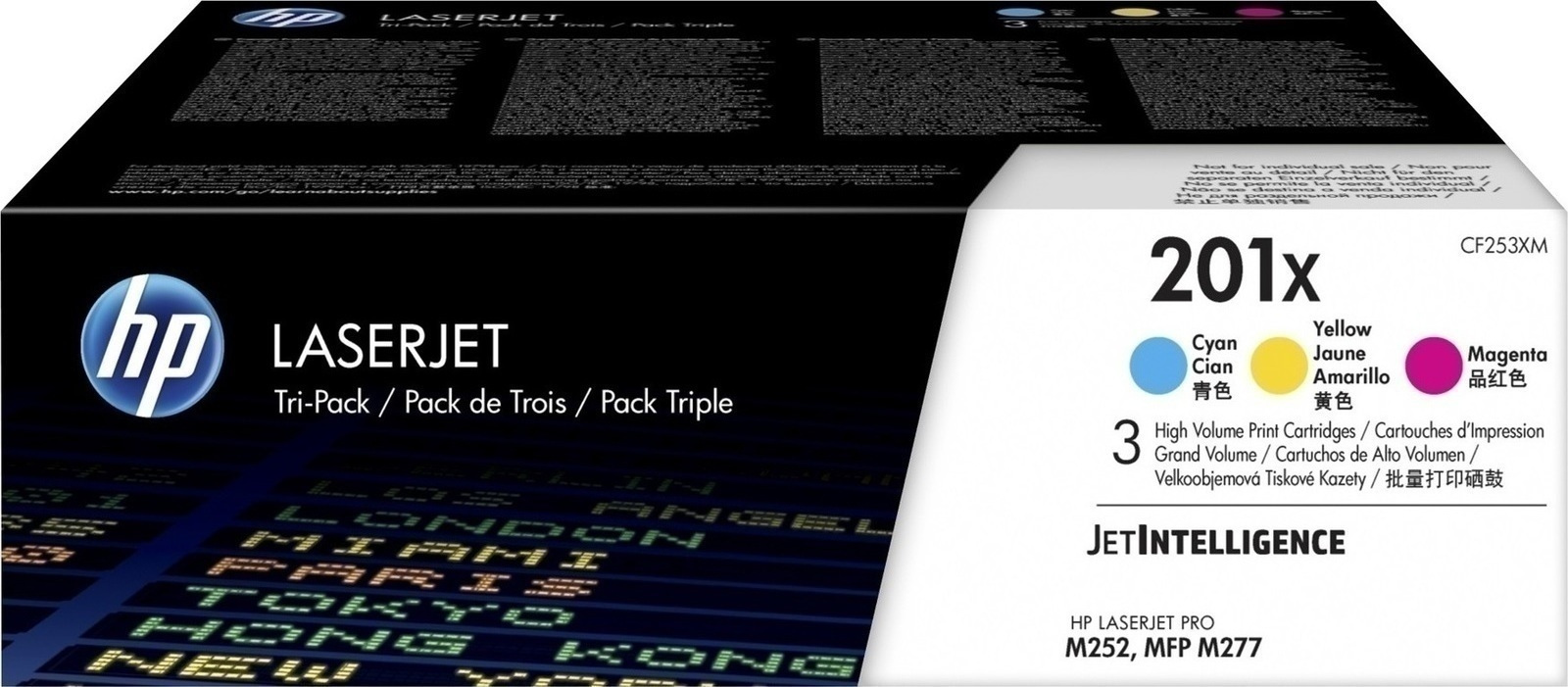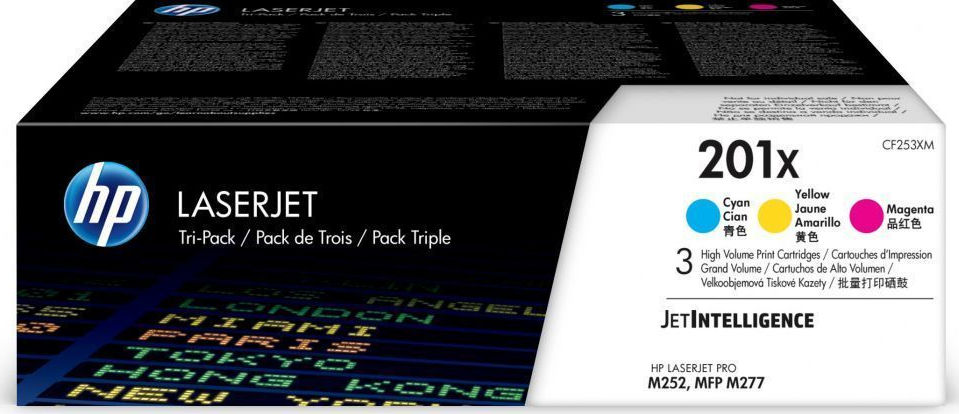 HP 201X Γνήσιο Multipack Toner Laser Εκτυπωτή Κίτρινο/Κυανό/Ματζέντα High Yield 3τμχ (CF253XM)